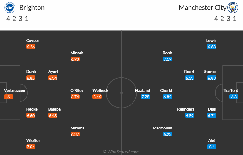 Предварительные составы Брайтон — Манчестер Сити
