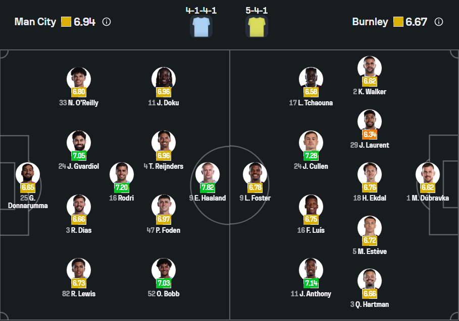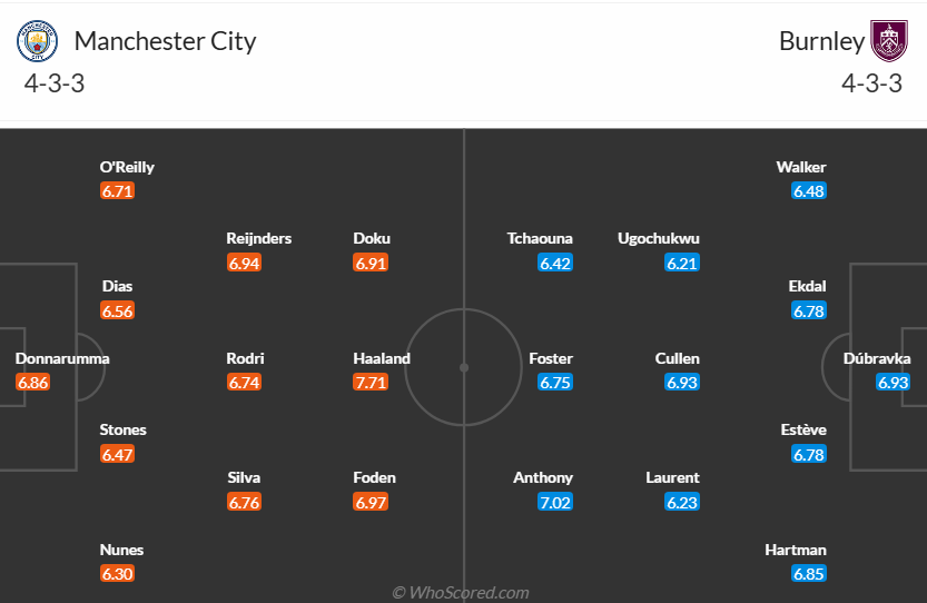 Ориентировочные составы на матч 6-го тура АПЛ, где встретятся «Манчестер Сити» и «Бернли».