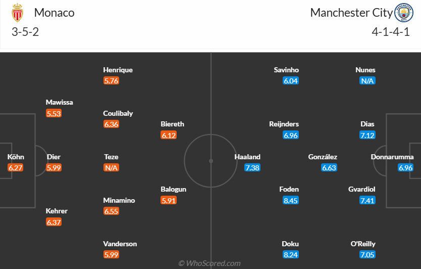 Предварительные составы Монако — Манчестер Сити
