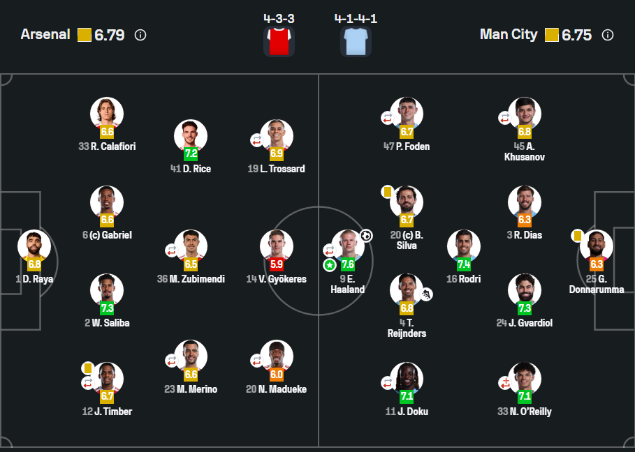 - Составы Арсенал и Манчестер Сити